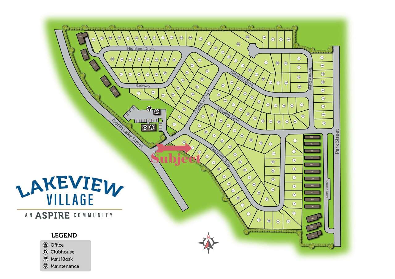 | Directions | Take Lake Street North to Lakeview Village Mobile Park, turn right on Lakeview Dr, take first right on Fieldcrest, unit is second on the right Lot #24. | |